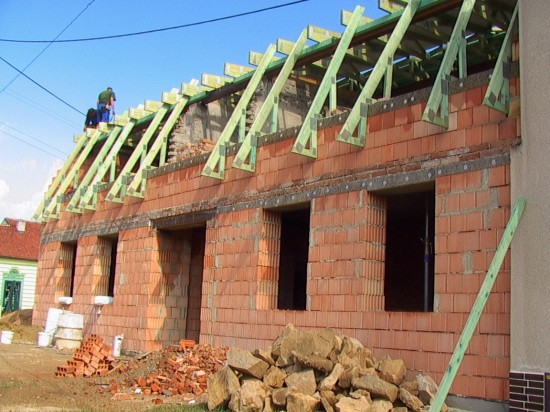 15. srpna je založena stavba z cihelných bloků „Tondach“. V týdnu od 18. – 23. srpna je vyzděno přízemí budovy. 1. září pokládá jeřáb stropní panely: 2 boční široká pole a jedno užší nad chodbou. 4. září se již vyzdívá 1. patro.