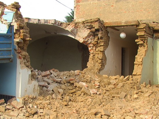 Dne 7. srpna je starý dům odstraněn a místo připraveno k zahájení stavby.